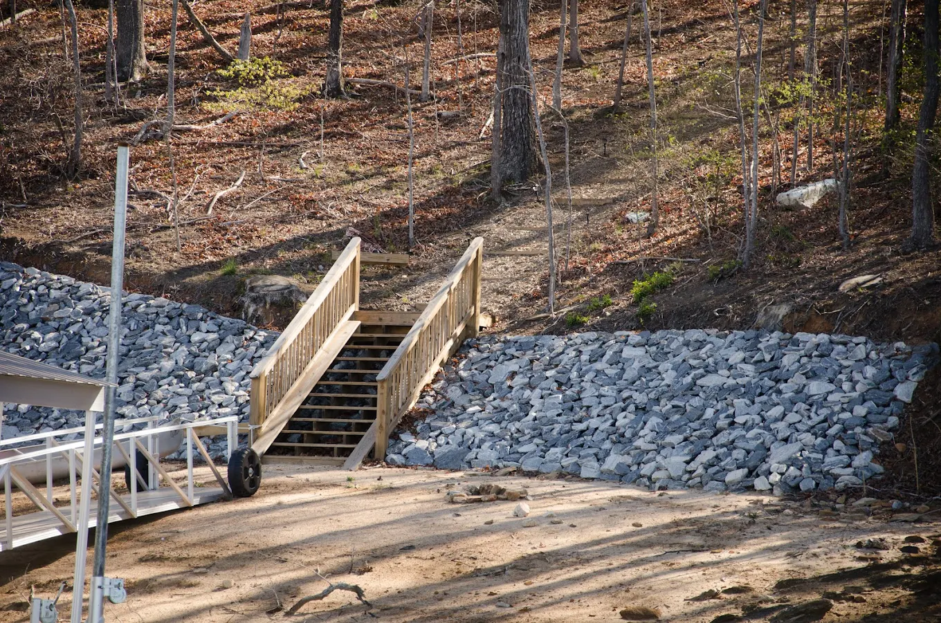 We provide durable erosion control solutions and custom lake steps designed for lakefront properties on Lake Lanier and beyond. Whether you’re searching for rip rap installation near you, needing safe and stable lake steps to your dock, or looking to enhance your waterfront with a long-lasting pathway, our team delivers expert craftsmanship built for steep banks, fluctuating water levels, and North Georgia’s unique terrain. From grading and underlayment to stone placement and step construction, we provide complete shoreline protection and easy, beautiful access to the water.